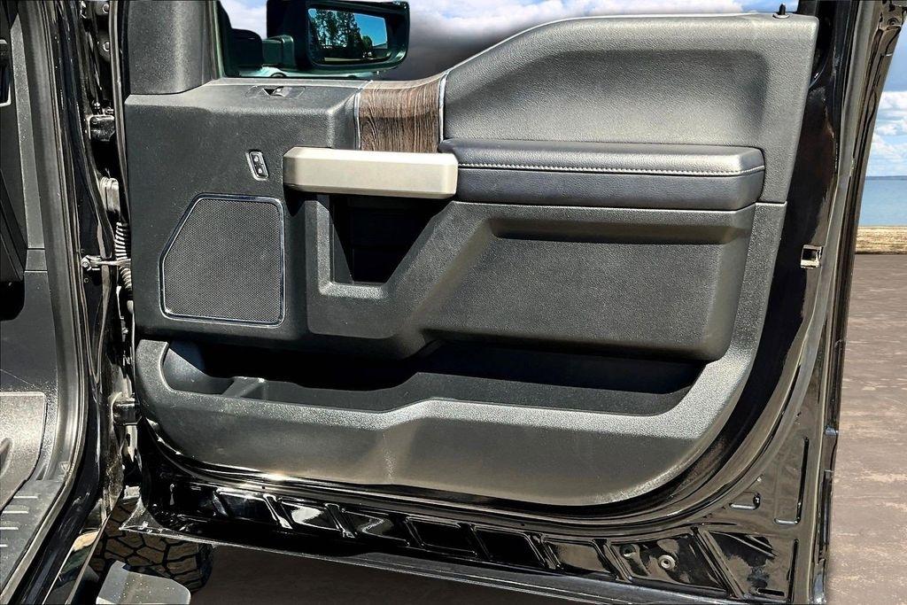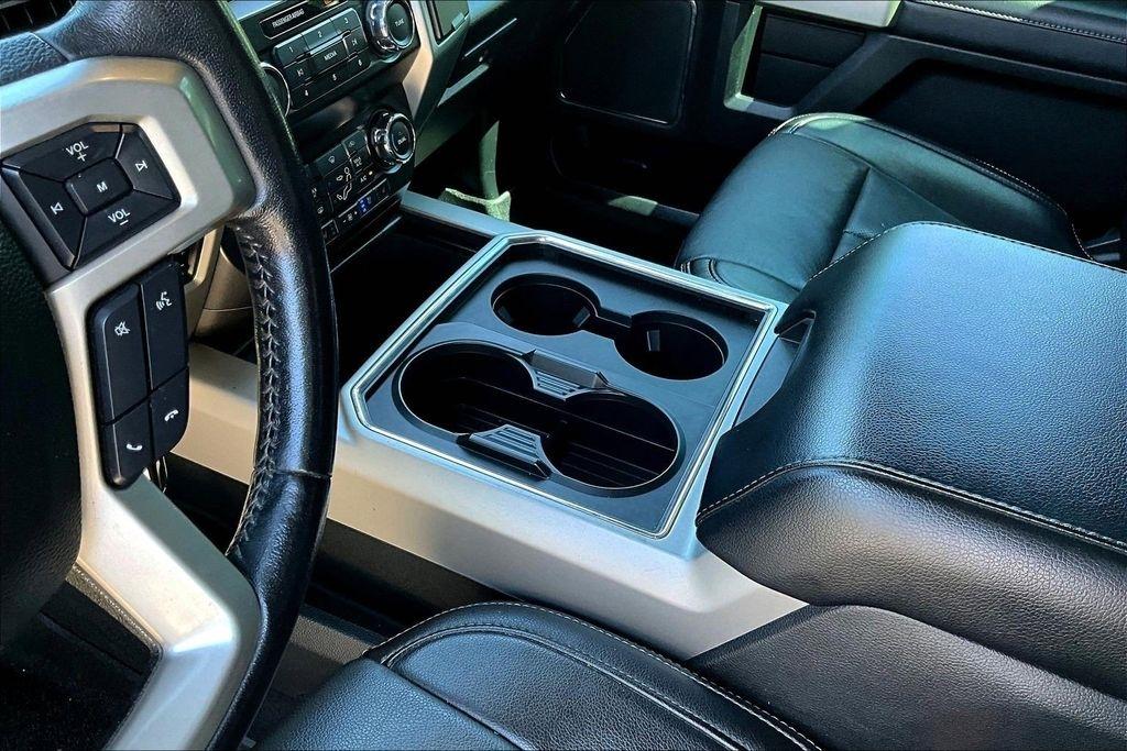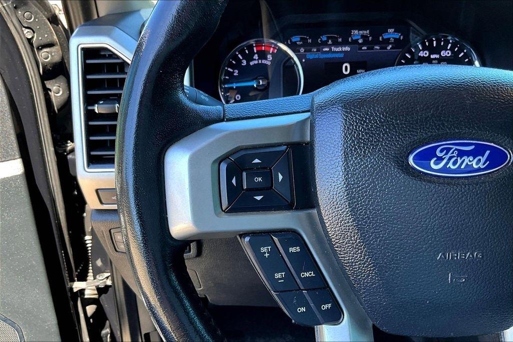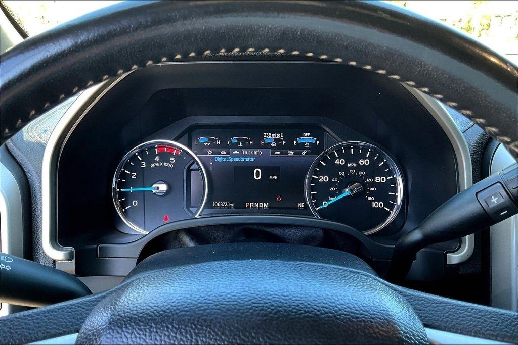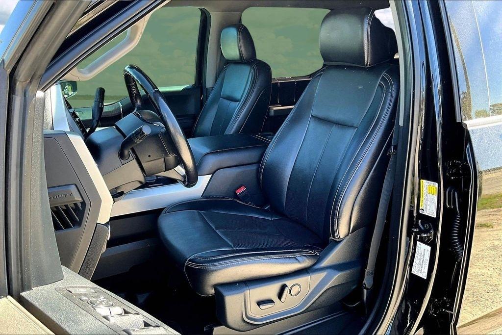 Experience the ultimate in comfort and convenience with the Lariat Value Package, which includes features like memory power-adjustable pedals, heated and ventilated driver and passenger seats with memory, and the impressive PowerScope trailer tow mirrors with memory. The voice-activated navigation system with SiriusXM Traffic and Travel Link ensures you'll always find your way, while the 110V/400W outlet provides the power you need to keep your tools and devices charged.