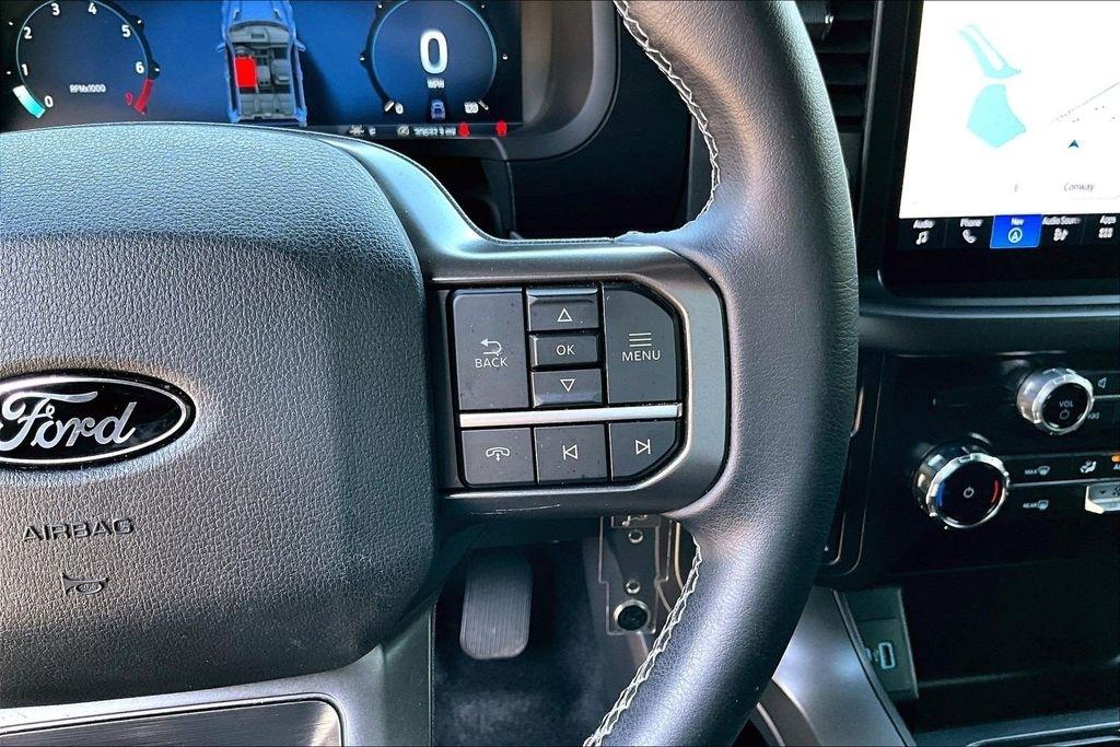 Comfort and convenience are at the forefront, with features like dual-zone climate control, power driver's seat, and SYNC 4 with enhanced voice recognition. The Mobile Office Package transforms your truck into a mobile command center, with a partitioned lockable rear storage and a console worksurface.
