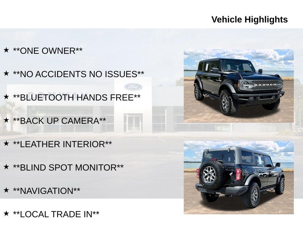 This Bronco Badlands is equipped with the high-end Equipment Group 334A package, offering a wealth of premium features. Enjoy the convenience of dual-zone climate control, the clarity of the B&O sound system, and the added safety of advanced driver-assistance technologies like Blind Spot Monitoring and Evasive Steering Assist.