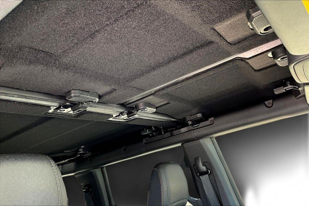 The Carbonized Gray Molded-In-Color Hard Top provides exceptional sound deadening and a sleek, integrated appearance. With the Front Row Top Panels Storage Bag, you can easily store the removable roof panels when you want to experience the open-air freedom of the Bronco.