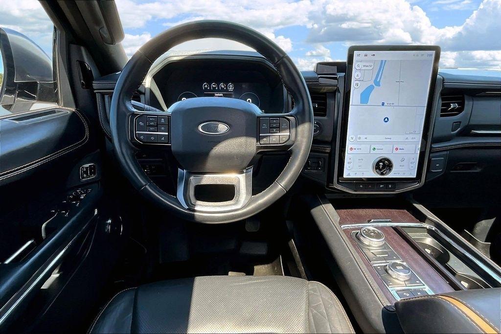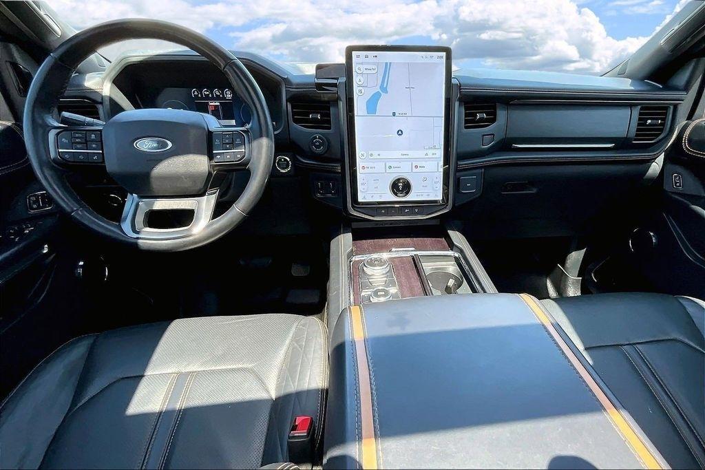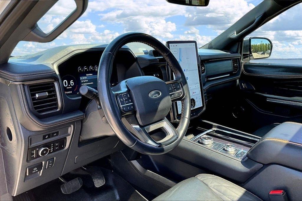 This Expedition Platinum also features a Heavy-Duty Trailer Tow Package, including a 3.73 axle ratio, integrated trailer brake controller, and a 360-degree camera with trailer reverse guidance. With its powerful EcoBoost V6 engine and advanced 4WD system, this SUV is ready to take on any adventure, whether it's towing your boat to the lake or navigating through challenging terrain.
