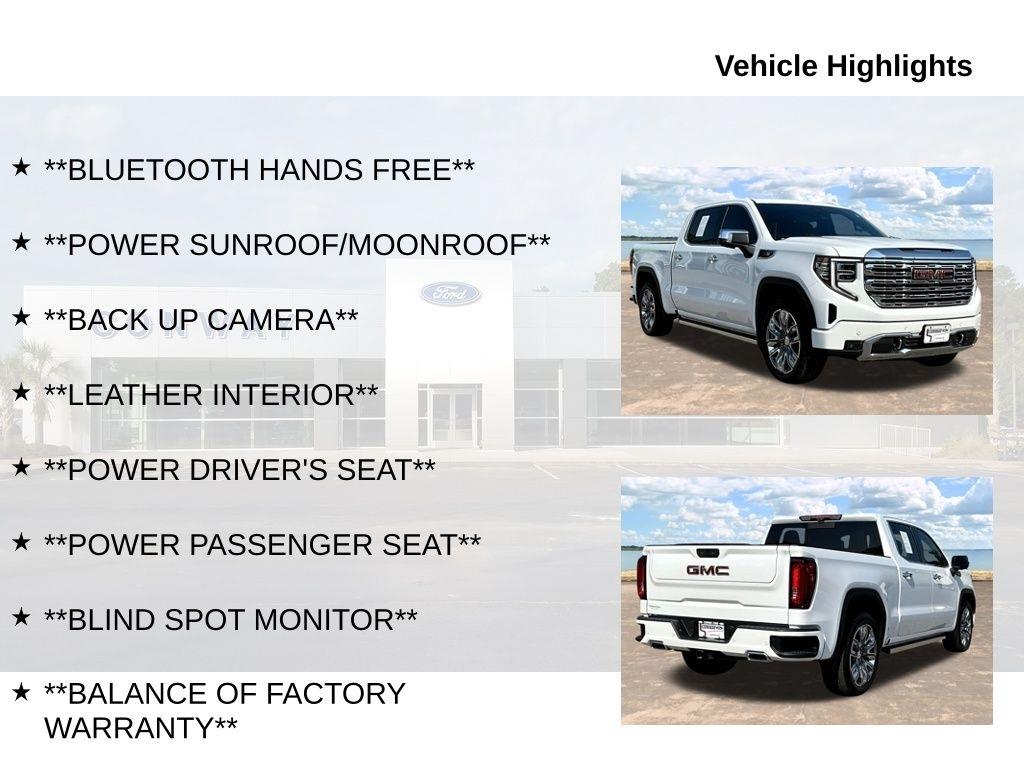 Meticulously crafted with an array of premium features, this Sierra Denali is a cut above the rest. Prepare to be captivated by its striking appearance, enhanced by the **BACK UP CAMERA**, **BLIND SPOT MONITOR**, **LEATHER INTERIOR**, and the stunning **POWER SUNROOF/MOONROOF**. Indulge in the comfort of **HEATED FRONT AND REAR SEATS**, **COOLED FRONT SEATS**, and the convenience of **REMOTE START** and **BLUETOOTH HANDS FREE**. Elevate your driving experience with the **BOSE SPEAKER SYSTEM**, **HEADS-UP DISPLAY**, and the cutting-edge **APPLE CARPLAY-ANDROID AUTO** integration.