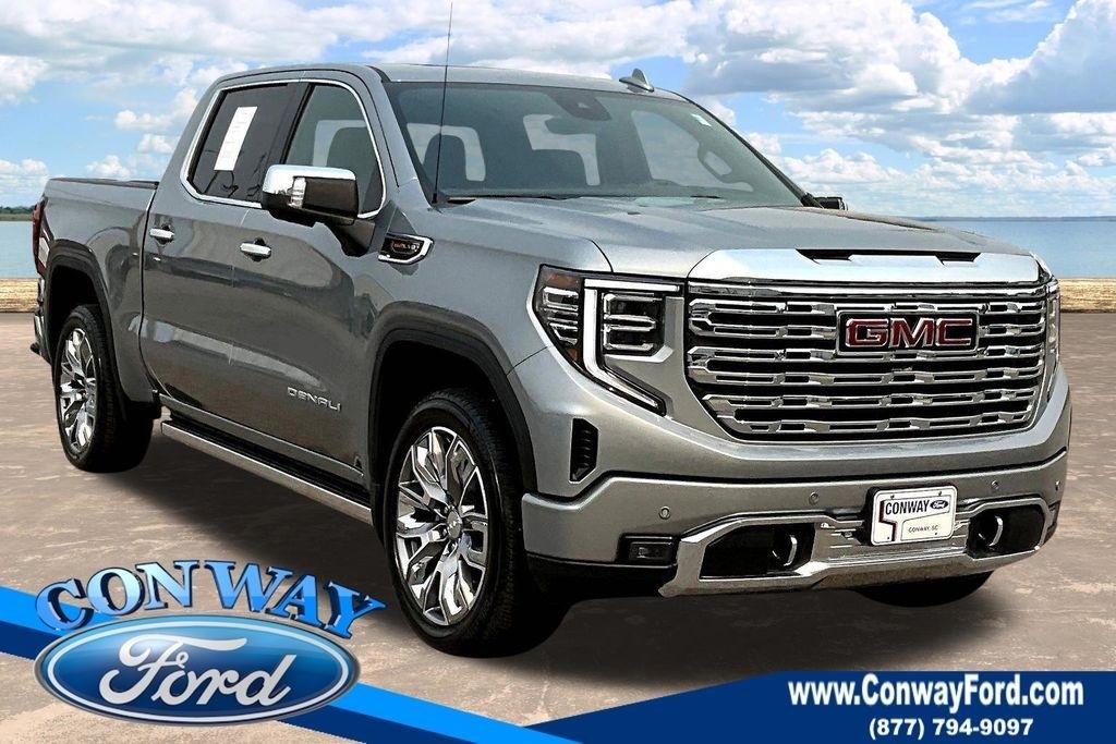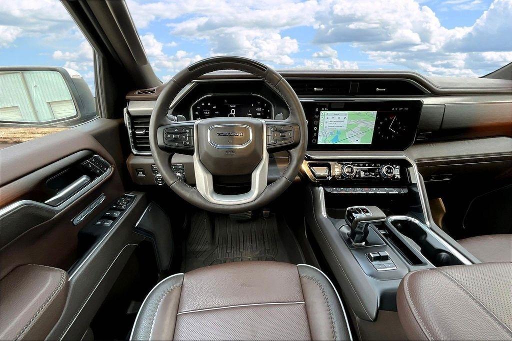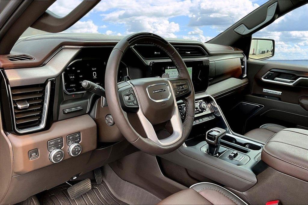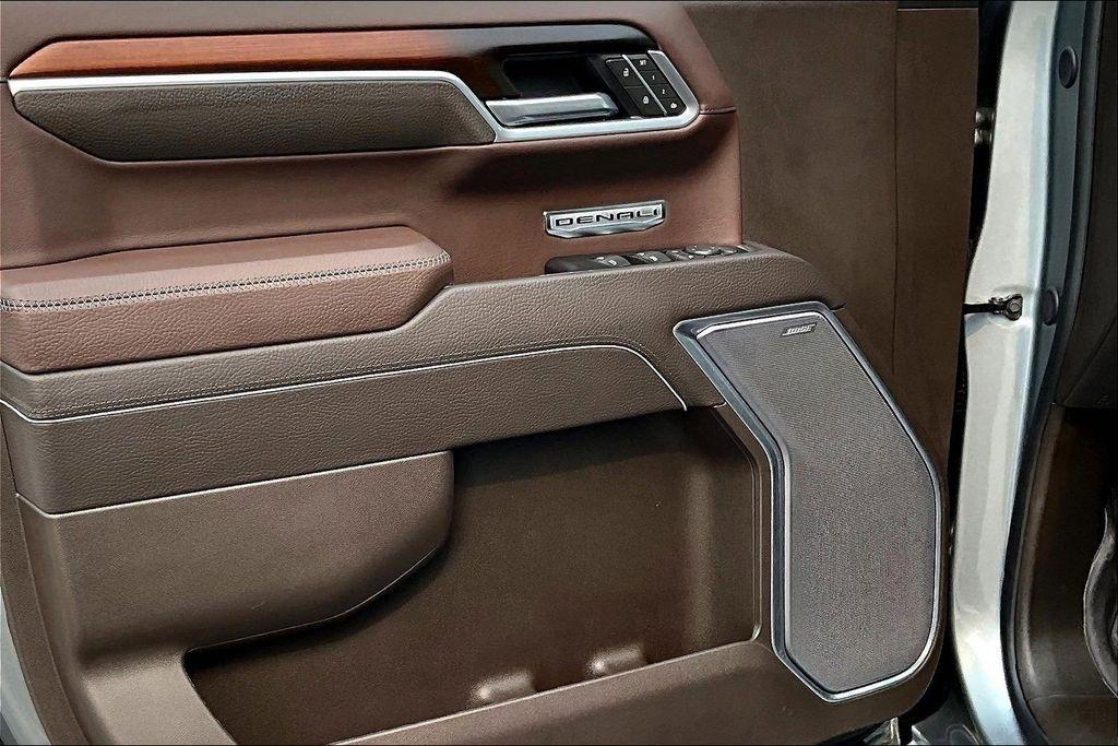 - AM/FM radio: SiriusXM with 360L - Premium Bose 7-Speaker Sound System - Radio data system - Radio: Premium GMC Infotainment Audio System - SiriusXM with 360L Trial Subscription - Steering Wheel Audio Controls - Air Conditioning - Automatic temperature control - Dual-Zone Climate - Electric Rear-Window Defogger - Rear window defroster - 120-Volt Bed Mounted Power Outlet - 120-Volt Interior Power Outlet - Memory seat - Power Front Passenger Windows with Express Up/Down - Power Front Windows with Driver Express Up/Down - Power Rear Windows with Express Down - Power windows - Push Button Start - Remote keyless entry - Remote Vehicle Starter System - Steering wheel mounted audio controls - Adaptive Cruise Control - Super Cruise - Brake assist - Electronic Stability Control - Universal Home Remote - Adaptive suspension - Auto-Locking Rear Differential - Power Rake and Telescoping Steering Column - Super Cruise Wrapped Steering Wheel - Traction control - Auto High-beam Headlights - Delay-off headlights - Front fog lights - Fully automatic headlights - Perimeter Lighting - 170 Amp Alternator - Auxiliary External Transmission Oil Cooler - Heavy-Duty Air Filter - Bumpers: body-color - Chrome Header with Signature Denali Chrome Grille - Chrome Wheel to Wheel Assist Steps - Denali Premium Suspension with Adaptive Ride Control - Dual Active Exhaust - GMC MultiPro Power Steps - Heated door mirrors - IntelliBeam Automatic High Beam on/Off - LED Cargo Area Lighting - Power door mirrors - Rear step bumper - Rear Wheelhouse Liners - Spray-on Pickup Bedliner with GMC Logo